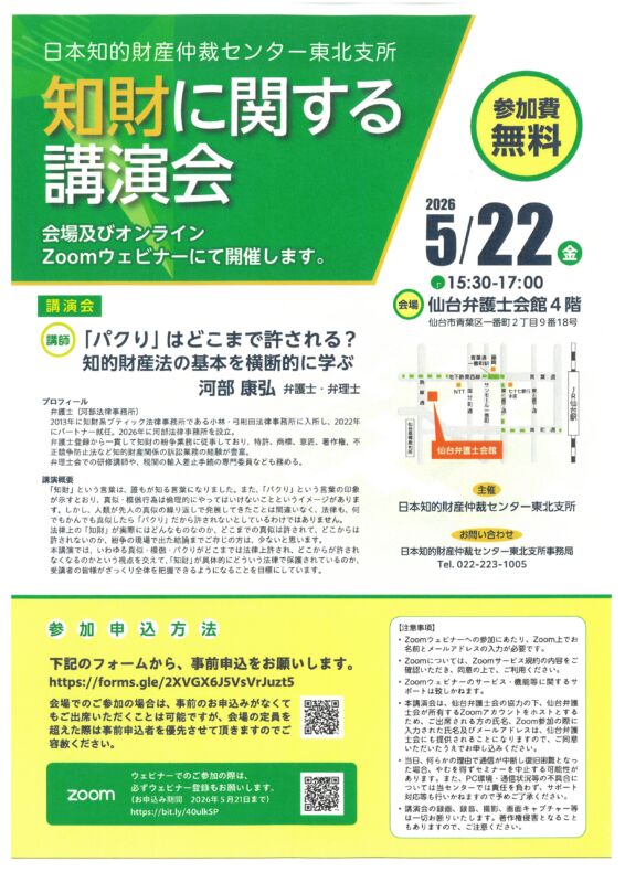 「パクりはどこまで許される?~知的財産法の基本を横断的に学ぶ~」講演会開催の御案内