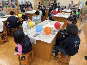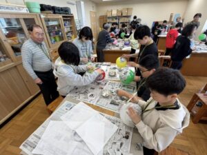 その後、今日と次回の創作として、張り子で作るお面を制作しました。